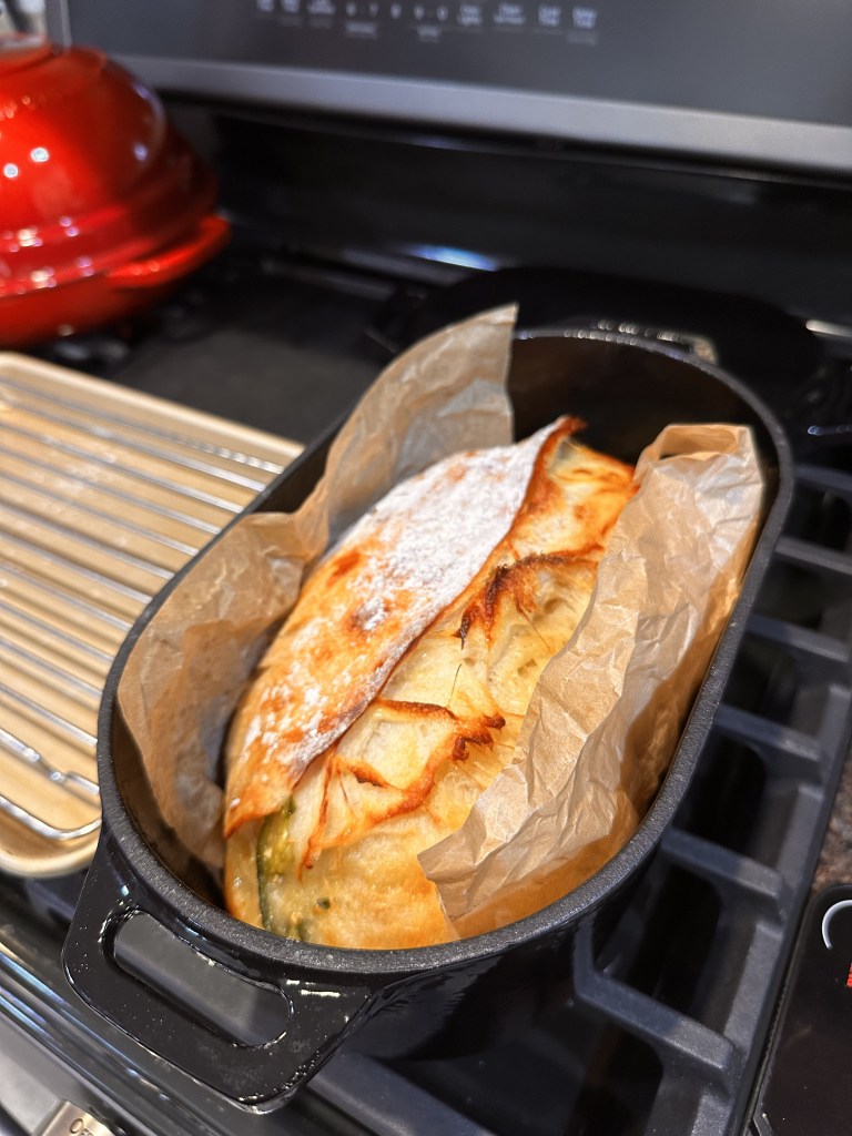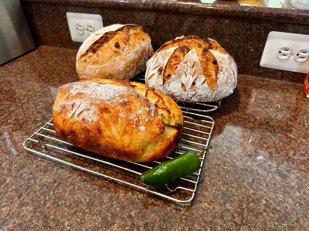 I’ve made this before, but this time it was even better! I’ve since learned to limit inclusions to 200 grams, and to always do a Batard when heavy with added items. And as with my last loaf of Jalapeno, I included the entire sliced pepper, whole with seeds and pith.