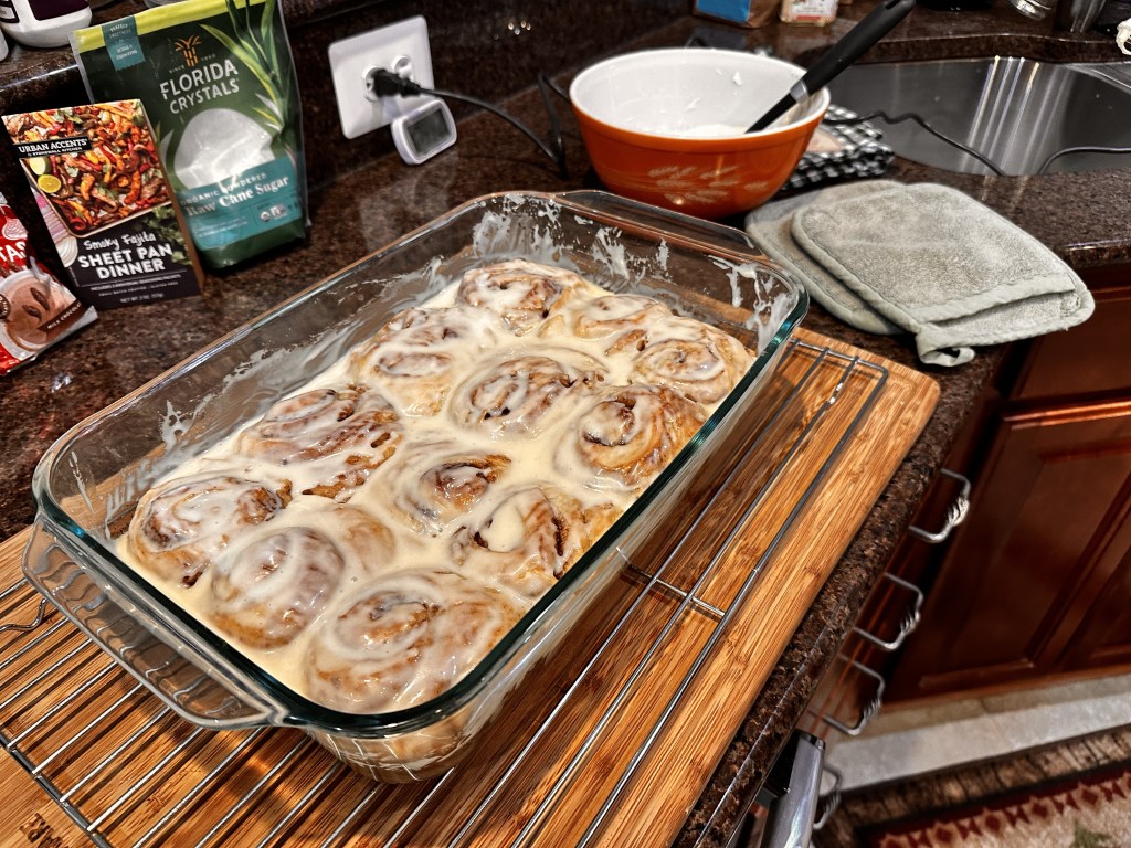 I really enjoy a nice warm, and sweet Cinnamon Roll. While at the Mayo Clinic for a few months with my spouse, I loved to escape to the Subway Level. There, they had both a Cinnabon and a Caribou Coffee across from each other. As a new baker, and mostly of sourdough bread, I thought Cinnamon Rolls were completely out of my league. Not shying away from a challenge, I searched for a recipe online that looked “doable”. Through just plain dumb-luck, I came across a recipe titled “No-Knead Sourdough Cinnamon Rolls” by Samantha Citro. I believe it only had about 15 reviews so I didn’t know what to expect. I’ll be the first to say: GREAT RECIPE!