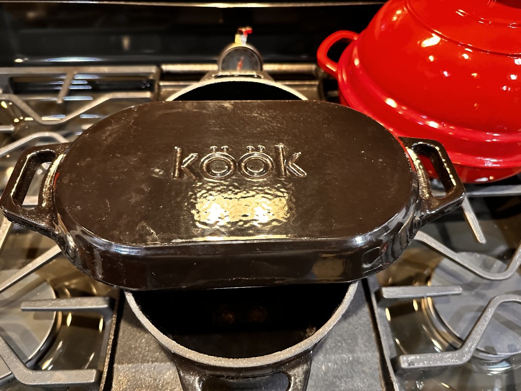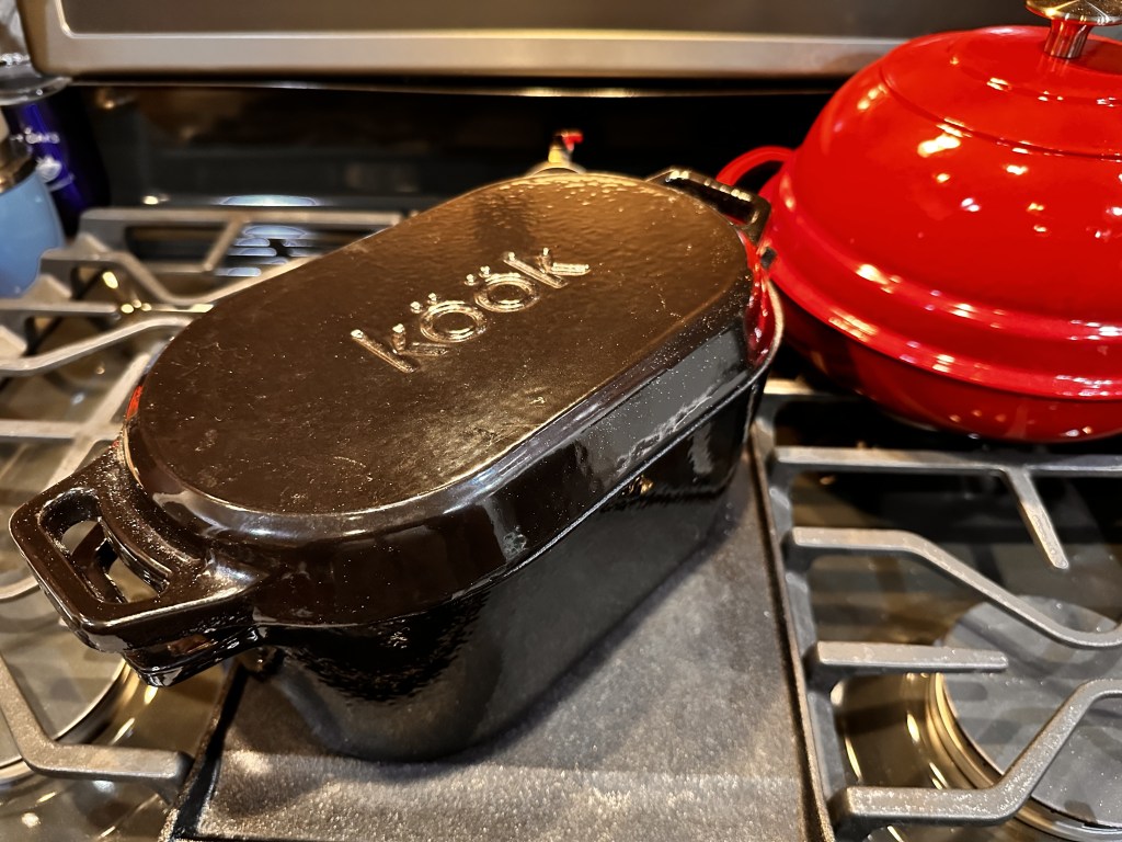 I’m really excited to try this loaf. With the combination of three flours, Bread, Whole Wheat and Rye, it should be soft and full of flavor! I also kept this bake to a smaller Batard size, although the KooK Pan used made it look more like a loaf. That’s fine…I really like the Kook and it bakes perfect almost every time. 55 minutes at 450, lid on and starting from a cold oven and cold pan. Here are some pics: