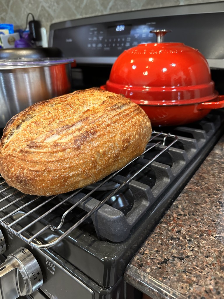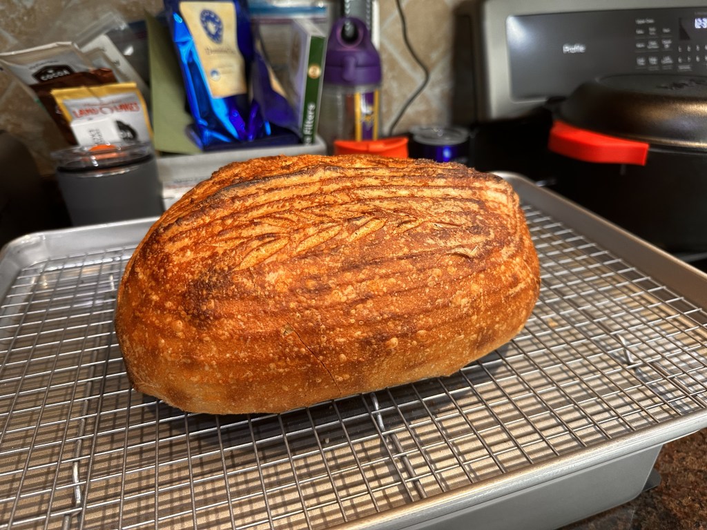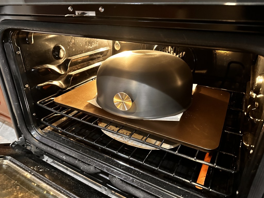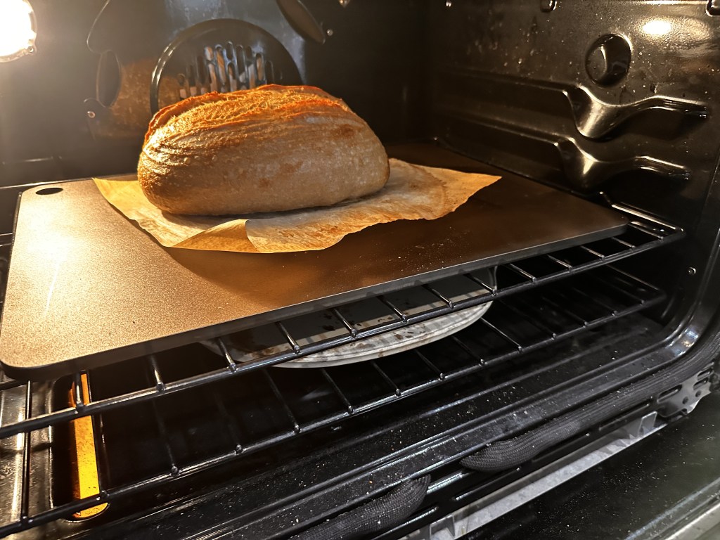 Recently I’ve tried to incorporate Open Baking into my sourdough production. I purchased a thick piece of baking steel from cookingsteels.com. I also purchased a Brod & Taylor Baking Shell. I have a gas oven, so it’s hard to contain any steam. This combination has been absolutely wonderful! I cover my loaf for the first 20 minutes at 450 degrees. Then, I bake it openly for about 13 extra minutes at 425 degrees until the color is just right.