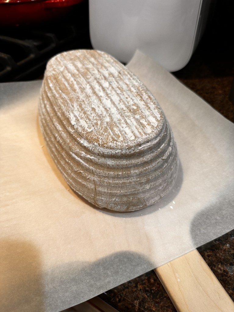 So in my search for quality flour I came across Central Milling and their variety of unique flours and grains. Their Old World Artisan Flour caught my eye. It’s 12.5% protein and 0.8% Ash. I didn’t quite know what they meant by “Ash.” However, you could certainly see little specs. They are the unfiltered remnants from the grinding process. Another thing I wasn’t prepared for is how “thirsty” this flour was! Wow! I added first 325 grams of water to my 500 grams of flour but the dough was still very stiff. I added another 25 grams but still, it didn’t do much. In the end, I added close to 400 grams of water. This resulted in 80% hydration. The dough was just perfect to work with. I had no doubt that this bake would shape and rise just fine.