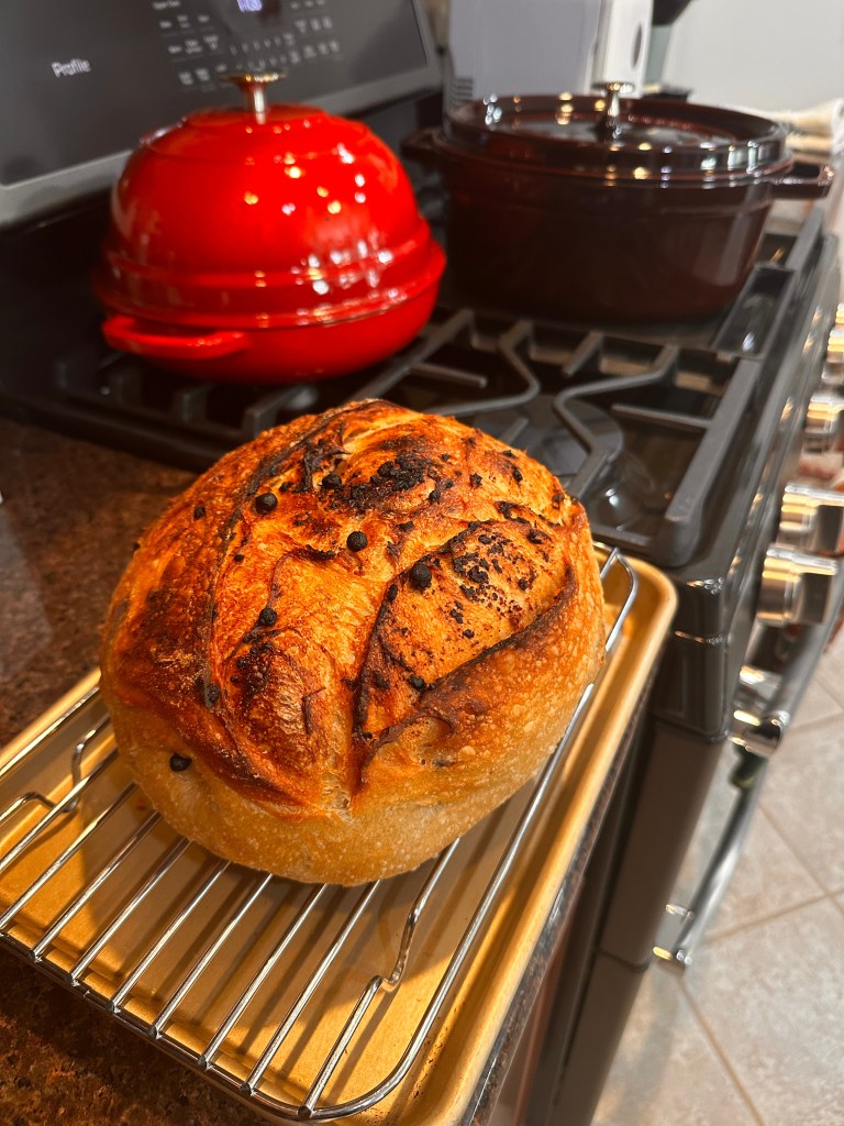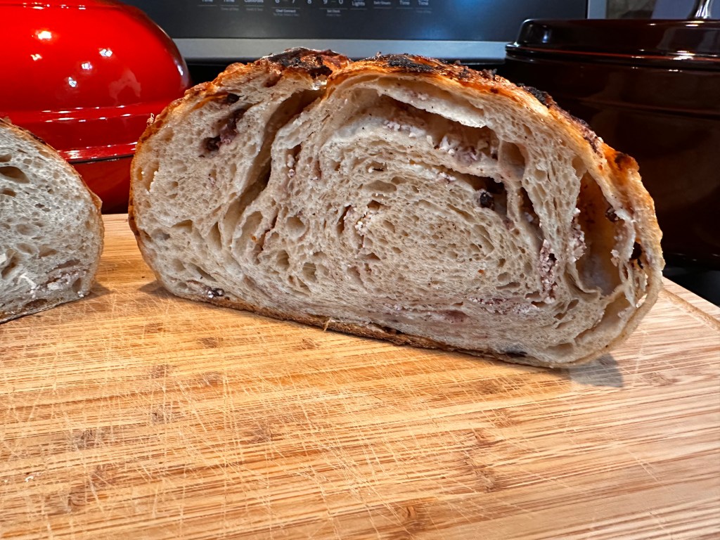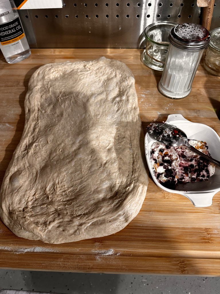 - I incorporated the goat cheese mix after fermentation by laminating and folding the dough.