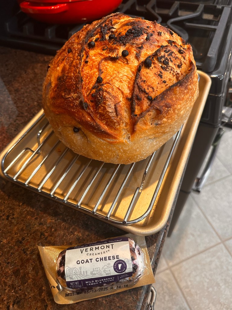 It turns out that blueberry and goat cheese (or any cheese) sourdough is one of our favorite between-meal snacks. The sweet berries coupled with the slightly tangy taste of sourdough is a match made in heaven.