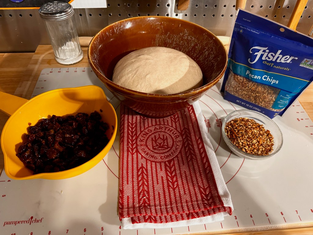 Sometimes, you just get lucky with Sourdough. This was one of those times. I knew that my wife liked Pecans. We already bought a bag. While looking through my ingredient-drawer I found a bag of Dried Cherries from Yoder’s Farm Market near Charlottesville, VA. Couple this with the combination of three quality flours and I think we hit a home-run! Well, at least my wife and step-son thought so!